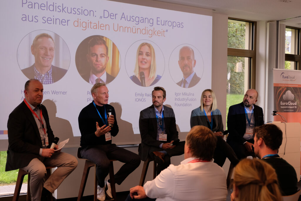 Zugleich rücken der Studie zufolge europäische Cloud-Provider zunehmend in den Fokus. Wie sich ihre Position stärken lässt, diskutierten Hans-Jürgen Werner. Director Marketing & Communication bei A1 Digital, Peter Höhn, Chief Commercial Officer bei plusserver, Emily Raidt, Head of Channel Sales DACH bei IONOS, und Igor Mikulina, Präsident des Stiftungsrats der IndustryFusion Foundation, in einem von Michael Hase, Manager EuroCloud beim eco Verband, moderierten Panel. „Der Ausgang Europas aus seiner digitalen Unmündigkeit“ war die Diskussion überschrieben.